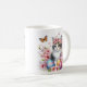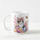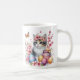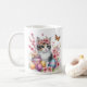 Mug com um gatinho com flores de cereja e ovos de Páscoa. Personalizável.