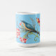 Pássaro azul em galho de árvore com cravos, bela ilustração.
