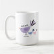 Eleve o seu presente do Dia das Mães com esta caneca de café personalizada. Adornada com uma encantadora ilustração de uma mamãe passarinho e seus dois filhotes em tons divertidos de roxo, azul e rosa, esta caneca adicionará um toque caprichoso à rotina matinal da sua mãe. O que torna esta caneca única são os dois espaços de texto personalizáveis que permitem que você a personalize com sentimentos como “Mãe” ou um nome, além de um ano ou data de “Fundada”. Crie um presente significativo para expressar seu amor e apreço por sua mãe.
