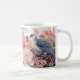 Esta elegante caneca de café apresenta uma ilustração em estilo chinês de um pássaro azul e peônias cor-de-rosa.