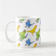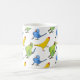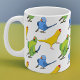 Os Adoráveis Pais do Ringneck Indianos dançam brincadeiras através da sua caneca de café num padrão alegre que inclui as variantes amarelas, azuis e verdes. É o presente personalizado perfeito para o seu dono de papagaio e amante de pássaros favoritos!