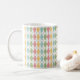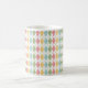 A caneca de café moderna e na moda apresenta um padrão pastel de diamante argyle em fundo branco.