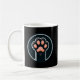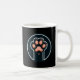 Uma caneca de cerâmica de tendência que apresenta um na moda ilustrativo de uma pata de gato com patas cor-de-rosa sobre um fundo circular escuro. Perfeito para amantes de gatos ou para quem desfruta de um design único e minimalista para iluminar seus momentos de café ou chá.