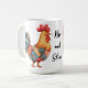 Café com o tema do galinha giro bonito que é perfeito para as pessoas matinais e personalizado com seu slogan ou texto padrão "Rise and Shine" Rooster é criado em um design de padrão colorido. Assim, outros itens de cozinha coordenando nesta mesma coleção.
