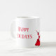 Esta caneca de café cerâmica é mostrada com um impressão de boneco de neve festivo. Texto: Feriados Felizes