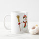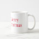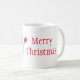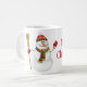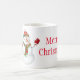 A caneca de café cerâmica é mostrada com um impressão de arte de boneco de neve de Natal festivo, com o texto Feliz Natal. Personalize este item ou comprar como está.