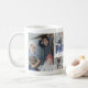 Uma caneca de fotos de avô bonito, com 8 fotos da família para você substituí-la pelo seu, o título "PAWPAW", e um ditado personalizado que diz "o homem, o mito, a lenda".