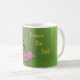 Esta caneca apresenta uma bela borboleta coletando néctar de uma flor rosa da zínnia. A mensagem recorda-nos que continuamos e que ouvimos as orientações.