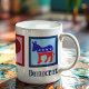 Bonita caneca de Paz e Amor Democrata com um Donkey do Partido Democrático em vermelho, branco e azul. Um presente democrata legal para um ativista político que trabalha na política e ajuda os candidatos a vencer, ajudando na eleição e na campanha.