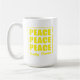Peace Peace Peace Pretty Please Coffee Mug. This typography design layers “peace” in bold repetition, building importance, while a gentle “pretty please” in script softens the tone, a heartfelt, visual for harmony and understanding.