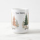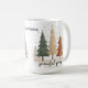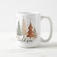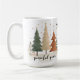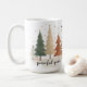 A serene winter wonderland scene unfolds, featuring three slender, stylized Christmas trees crafted from delicate geometric shapes, their forms emerging from a soft, watercolor-like texture that evokes the gentle whisper of snowfall. The trees stand tall in a harmonious palette of muted tones, with the sage green of the first tree subtly gradating to the warm beige of the second, which in turn seamlessly transitions to the terracotta hue of the third. Each tree is adorned with a sprinkling of small, shining gold stars that seem to twinkle like fireflies on a winter's night, their subtle sparkle adding a touch of whimsy to the overall design. Beneath the trees, delicate handwritten text in a modern script font flows gently, reading "Peaceful Pines" in a beautiful, cursive script