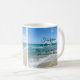 Pegadas no Sand Inspirational dizendo cite poema/história sobre ser transportado pelo Senhor durante tempos difíceis. Linda água azul e cena do oceano de areia branca com pegadas reais caminhando pela costa. Excelente de presente para as mulheres cristãs em Dia de as mães, seu aniversário ou qualquer hora para expressar fé e esperança.