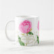 Caneca De Café Peônia Rosa & Margarida Nome e Data Ilustrados