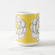Make a statement with this vibrant Bold Yellow Peony Mug. This modern design features a striking black line art illustration of a full peony blossom set against a bright yellow and cream background. The graphic, stylized approach brings a contemporary and bold twist to the classic floral theme.