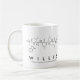 Willis soletrado em aminoácidos como W I L I S (Tryptophan Isoleucine Leucine Isoleucine Serine) numa caneca para o cientista em si.