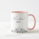 Caneca de café do casamento de Charlotte. O design exibe um esboço deslumbrante da linha do horizonte com a capacidade de personalizar com seu nome ou os nomes das suas damas de honra, convidados ou outros. Atualize facilmente o tamanho e a cor da caneca ao seu gosto.