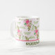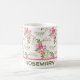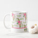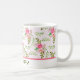 Belo design floral com flores rosa e folhas verdes e listras ao fundo. Um item indispensável para sua coleção floral ou de primavera.
