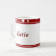 Para mudar a cor da cor de fundo e de texto da listra na caneca, clique "personalizam" o botão, a seguir clicando "edite " >> " fundo", selecionam uma cor para as listras. Para a cor de texto, clique sobre o nome para ativá-lo e para selecionar uma cor clique perto a caixa de cor pequena.