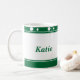Para mudar a cor das listras e a cor de texto na caneca, clique "personalizam" o botão, a seguir clicando "edite " >> " fundo", selecionam uma cor para as listras. Para a cor de texto, clique sobre o nome para ativá-lo e para selecionar uma cor clique perto a caixa de cor pequena.