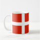 Personalize facilmente esta caneca! Pegue um para toda a família! A bandeira nacional da Dinamarca, Dannebrog, é vermelha com uma cruz escandinava branca que se estende até às bordas da bandeira.