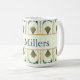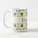 Bring Gatsby-era elegance to your space with this personalized Art Deco Mug. Featuring a refined teal and gold geometric pattern on a creamy pale yellow background with a classic name band, it’s a perfect adornment for your home and for luxe gift giving.