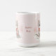 This adorable coffee mug features a cute, sitting kitten wearing a pink and white striped scarf, set against a soft, snowy winter scene. The whimsical watercolor style creates a cozy, dreamy look. It is fully personalizable; simply add a custom name to the design. This charming mug is the perfect holiday or birthday gift for cat lovers, kitten owners, and anyone who loves cute, pastel winter decor.