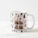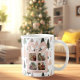 Celebrate a Pink Christmas with this personalized photo mug featuring your favorite family moments inside a charming blush pink gift box design. The background showcases a modern Scandinavian tree pattern in muted sage, black, and pink tones — perfect for cozy, contemporary holiday style.