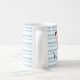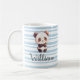 Customize the mug with your child's name in a beautiful blue script font. The name includes a thin dark outline that ensures the text stays sharp and easy to read against the striped pattern, making it a truly special keepsake. Whether they are enjoying their morning milk or a cozy cup of hot cocoa, this custom mug makes every sip more fun.