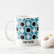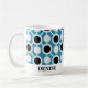 Personalized coffee mug with circle pattern in blue. Personalize online or contact designer at personalizedbyu@gmx.com before your order and it will be customized for you at no extra charge.