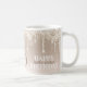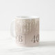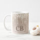 Mágica caneca de aniversário em pêssego bege/pálido. Esta caneca de na moda apresenta brilho de pessegueira em um pessegueiro - gradiente bege, um monograma personalizável de 2 letras, idade em número e escrita e uma mensagem de aniversário feliz para o destinatário. Tudo é personalizável. Adicione um toque de glamour personalizado às suas festividades.
