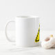 Um sinal de precaução com um gato de fundo amarelo. Esta design parece realmente eficaz nestas Mug