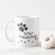 Preferencialmente que você é amante de cachorro ou amante de gato, esta caneca de café engraçada e fofa expressará seu amor pelos seus animais de estimação. Apresentando designs de impressão de pata e a interessante reprodução em palavras "Permaneça Pawsitive"