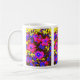 Um vibrante design azul, roxo, vermelho, amarelo e preto pop de petúnias.