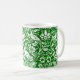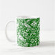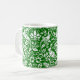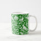 Mug em um William Morris, design de papel de parede Art Nouveau de faisões e lebres entre folhas, vinhas e flores - branco sobre fundo verde esmeraldo profundo