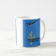 O design de caneca de café que diz "Incorporado em 25 de fevereiro de 1881" e "Phoenix" é azul colorido com uma alça branca e uma jante branca. Ele o torna ideal para café ou chá de manhã. É seguro para micro-ondas e lava-louças.