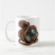 Image sur un mug d'une pieuvre enserrant dans se s immenses tentacules un objet insolite trouvé au fond de l mer, intriguée, la pieuvre l'a agrippée pour l'emporter.