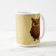 Uma coruja fofa feita de escamas de pínus. Personalize adicionando seu próprio texto no lado oposto.