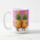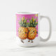A caneca de café para melhores amigos, esta design apresenta figuras de abacaxi kawaii abraçadas para significar amizade e diversão. O fundo cor-de-rosa e dourado traz uma sensação alegre a este design.