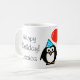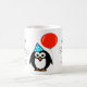 Caneca De Café Pinguim Mágina de aniversário com balão vermelho e
