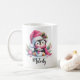 Crie uma caneca de Natal personalizada e única que apresente um pinguim fofo num chapéu e lenço cor-de-rosa, rodeado de verde festivo e ornamentos. O design cor-de-rosa giro do pinguim alegre com um boneco de neve, e o nome modelo num tipo de letra de escrita de caligrafia facilita o crio de uma caneca de café perfeita para uma menina que ama pinguins para adicionar vibrações festivas a uma estação de férias.