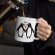 Casal de pinguins bonitos com iniciais personalizados. Esta caneca de café personalizada faz um presente de Dia de os namorados divertido para a sua querida.