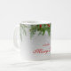 Esta caneca de Natal festiva mostra minhas fotos originais em flocos de neve entrelaçadas com verdes de férias de inverno como pinho e holly em um fundo de cinza leve. Personalize com o nome do destinatário para que possam desfrutar da sua própria caneca de feliz. Um presente divertido e bonito para ela ou para você mesmo! (Alternativamente, você pode eliminar o nome e adicionar a palavra My em frente à Feliz para que ela diga My Feliz Mug,)