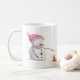 Uma caneca bonita com uma ilustração de um boneco de neve com um chapéu cor-de-rosa e um lenço assando marshmallows. presente de excelente para as próximas férias. Personalize o texto com sua própria mensagem. Ilustrada e projetada por Patricia Alvarez.