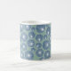 Esta caneca tem uma design moderna do século médio de círculos azuis empoeirados com estornamentos brancos dentro num campo de verde-marinho.