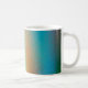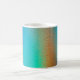 As linhas azuis, verdes-azuis, laranja e castanho-bronze parecem ser pintadas nesta caneca. Bonita e colorida!