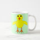 Esta caneca de na moda apresenta uma imagem adorável de um pintinho de Páscoa amarelo giro com olhos pretos, pés cor de laranja e um bico laranja bastante aberto. Esta adorável design é certamente apreciada por adultos e crianças.