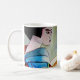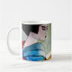 com design de arte original de pintura aquosa de Geisha Japonês em azul-céu intrincado quimono de seda detalhado com fundo azul. Brilhante e colorida, inspirada pela arte oriental e asiática, esta bela senhora vem da região de Kyoto do Japão.