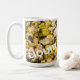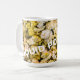 Visão macro de grãos ou amêndoas de pipoca quente atrás do vidro molhado. Fotografia texturizada. Não perca a oportunidade de olhar para uma camiseta engraçada Que ESTOU BEM, que retrata um cheio estomacal de pipoca. Uma caneca de café engraçada. Personalizável. Você pode alterar ou excluir o texto do modelo Pipoca líquida