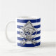 Um cromo prateado como design pirata em uma decoração de listras azuis marinho. Um presente náutico moderno para o seu dispositivo. Use o link "Mensagem" para entrar em contato conosco com suas solicitações especiais de design ou para obter assistência com qualquer das suas necessidades de personalização.