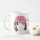 Um pirata giro numa bandana cor-de-rosa, brinco e um olho rosa. O ditado "Ahoy Matey" pode ser alterado como desejado.